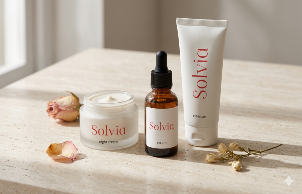 Jedes Produkt von SOLVIA ist auf die echten Bedürfnisse der Haut abgestimmt: Feuchtigkeit, Beruhigung, Regeneration und Glow.